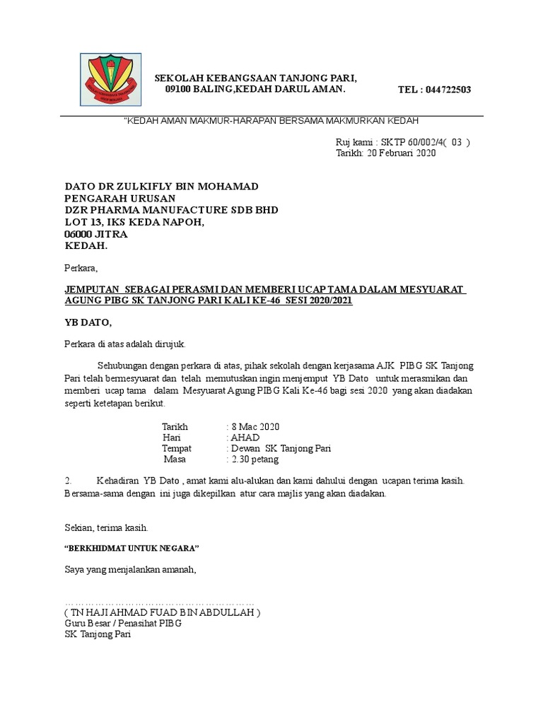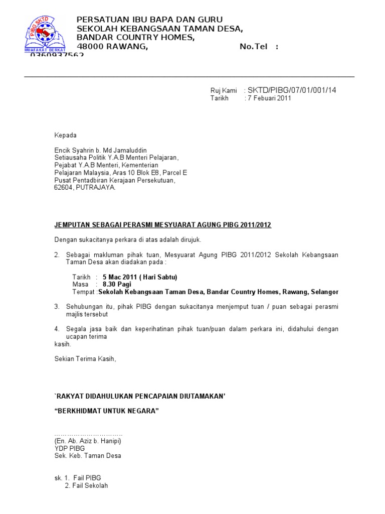 Contoh Surat Jemputan Perasmian Mesyuarat Agung Pibg Servicesheavenly