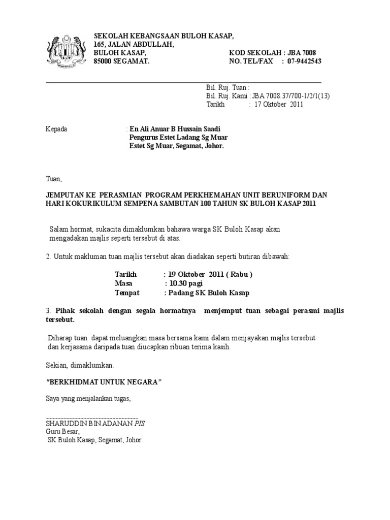 Surat Jemputan Yb Ke Sukan Tahunan Pdf